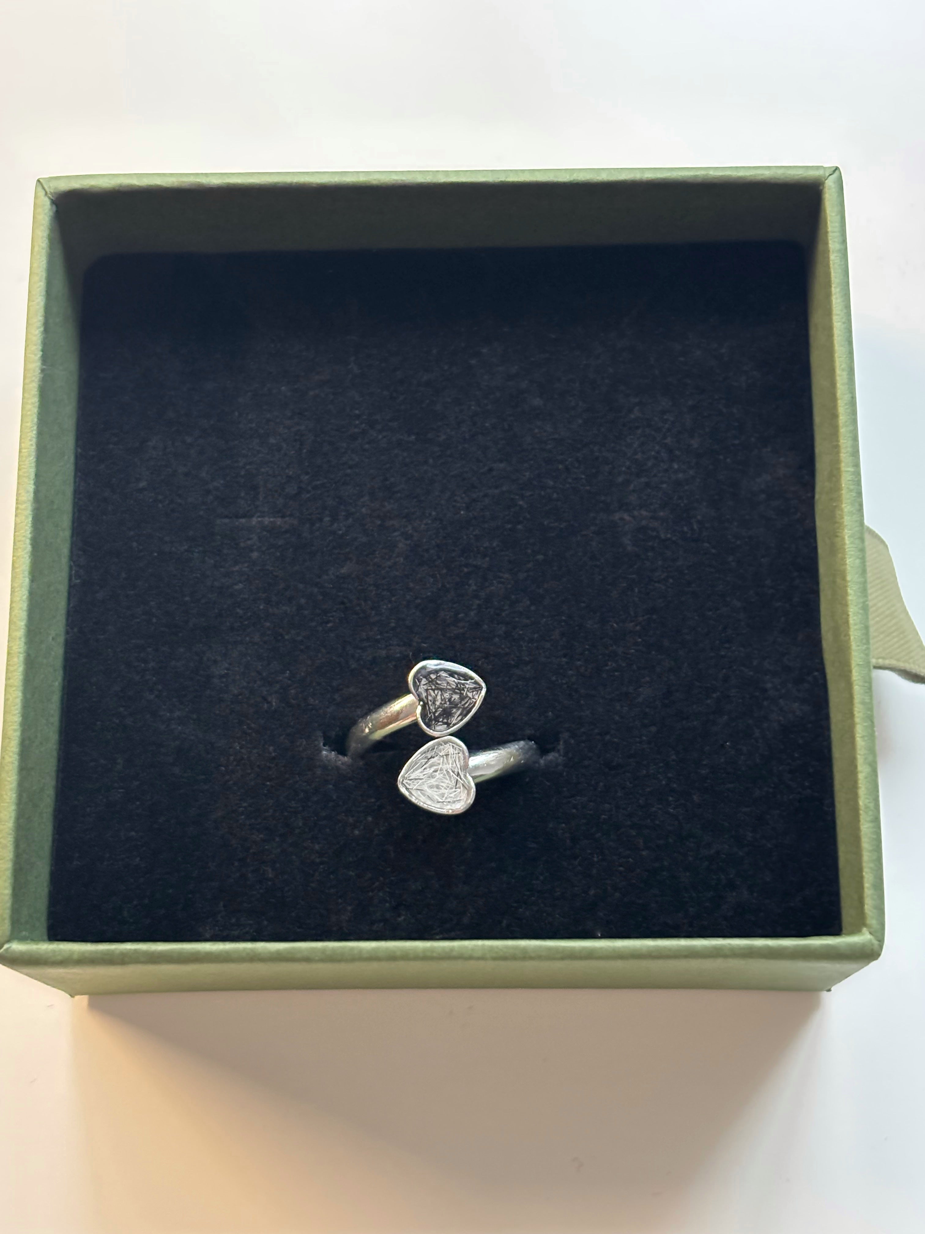 Anillo de Acero Inoxidable, con forma de dos corazones.